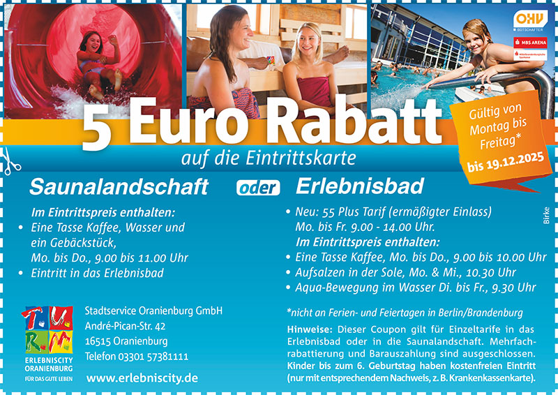 Mit Saunalandschaft und Erlebnisbad bietet „TURM ErlebnisCity Oranienburg“ Spaß und Erholung für die ganze Familie.